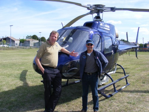 Lundi 13 septembre, à midi, une bonne partie des habitants du bourg de Saint Christoly ont levé le nez de leur assiette et regardé le ciel. Un vrombissement en était la cause. Un hélicoptère venait de se poser, comme ça, sur le stade. Attroupement autour de l’engin, dont se sont extraits deux personnes dont la première question fut "il y a un restaurant ici ?".