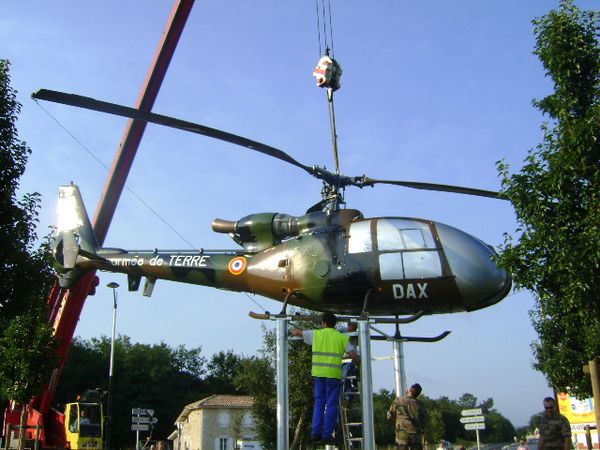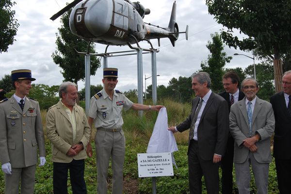 Le jeudi 30 juillet, une Gazelle SA341 a été officiellement installée au rond-point de Seyresse, au carrefour de l’avenue Nungesser et Coli, de la route de la Parcelle et de la rue Paul-Lahargou, à proximité de la base école de l’EAALAT. C’est dans cette enceinte militaire que la Gazelle a longtemps servi puisqu’elle a été mise en service en 1974 pour l’instruction des pilotes et qu’elle a ensuite été engagée sur tous les théâtres d’opération. Désormais, ce sont des hélicoptères Colibri EC120 qui prennent le relais pour l’instruction des pilotes. Les premiers aéronefs de ce type étant arrivés sur la base il y a quelques mois. Plus de deux années auront été nécessaires pour que cette Gazelle, soit installée à cet endroit. C’est désormais chose faite et lors de la cérémonie, entouré de plusieurs élus, Gabriel Bellocq, maire de Dax a insisté sur « tout ce que symbolise cet hélicoptère ». « La Gazelle symbolise d’abord l’histoire de Dax et de sa base-école, a rappelé le maire. Les Dacquois sont très attachés à cet appareil qui évolue au-dessus de nos têtes depuis de nombreuses années. La présence, ici, à ce rond-point de la Gazelle, sera le témoignage d’une page importante de l’histoire de l’aviation légère à Dax ». Le maire a également rappelé tout le travail entrepris par la municipalité, la communauté d’agglomération du Grand dax et le Conseil général des Landes pour la future installation du pôle technologique sur les terrains de la rue Pascal-Lafitte lesquels accueilleront la société Héliléo. Héliléo ayant pour mission de mettre au point le système Galiléo, l’application européenne du GPS. De son côté, le colonel Dorandeu, commandant de la base a lui aussi insisté sur le symbole de cette Gazelle qui souligne « toute la proximité de la base et de la Ville ». A cette cérémonie assistait également le colonel Veillon, le prédécesseur du colonel Dorandeu. source – Cliquez ici pour voir d’autres photos lors de l’inauguration.