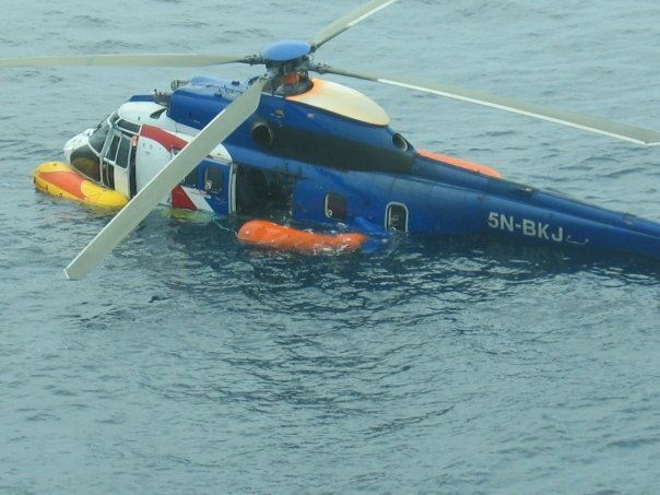 A Puma helicopter (5N-BKJ) has ditched into the sea off the coast of Nigeria today. It was only a few hundred meters from its destination, the seismic research vessel, Kondor Explorer. There were 18 people on board including the two pilots.