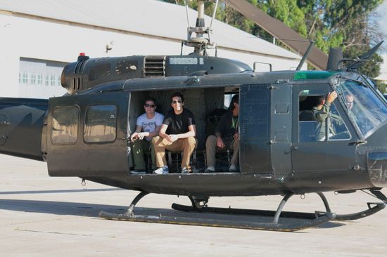 Pour suivre les 362 concurrents (ils sont un peu moins après les cinq abandons d’aujourd’hui), même quand ils sont à Fiambala, au nord de l’Argentine, accolé à la Cordillère des Andes, au pied de l’Altiplano, il n’y a pas dix mille solutions…tous les chemins menant au "motorhome". Celui qui emprunte la voie classique, celle des routes "civiles", les journalistes, certains membres de l’organisation ou des équipes techniques, embarquent dans des bus. Grand confort, les bus à deux étages, avec air climatisé branché en permanence et siège couchette… presqu’un must comparé à une nuit sous la tente le long de la piste où les mécanos réparent les machines entre les étapes. Et il y a celui des airs ! Une des meilleures expériences de ce Dakar restera sans aucun doute les transferts en hélicoptère et en avion militaire. Le Fokker du tout premier jour, qui sentait bon le fauve, n’était qu’un avant-goût : fauteuil passager traditionnel et un équipement spartiate, mais amplement suffisant pour la cinquantaine de minutes de vol qui nous a conduit à l’aéroport militaire de Rio Cuarto. Sur le tarmac, l’hélico Bell, façon terreur du Vietnam, nous attendait : 4 places assises de chaque côté de la carlingue et le bruit des palles qui t’envoie tout droit dans Apocalypse Now. Je passe sur le vol en soi, l’odeur du Napalm au matin, pour arriver tout de suite à "la mission récupération". Une fois au Check Point 2 de l’étape entre Cordoba et La Rioja, il a fallu attendre sept heures que "Oscar" (le nom de code de l’engin) vienne nous récupérer, puisqu’il avait été mobilisé dans l’accident qui a coûté la vie à une spectatrice locale, fauchée par une voiture du Dakar. La Mission Rescue aurait pu être une opération de routine, si, vers 20 heures, l’hélico venu nous chercher n’avait pas eu à atterrir en urgence (avec nous à l’intérieur), en raison d’une fuite d’huile… petite frayeur…j’avoue. Scotché au sol au beau milieu d’un pré jonché de débris de tracteurs, de friteuses hors d’usage et autres sources potentielles de tétanos, le Bell est vite devenu l’attraction principale du village où nous étions. J’ai finalement retrouvé le bivouac vers 21 heures, content de mon baptême en hélico… il me tardait déjà celui en Hercule, un avion militaire "gros porteur" où les fauteuils sont réduits à leur plus simple expression : des lanières de tissus, façon hamac… mais en pire. Malgré l’inconfort, tous les journalistes, sans exception, ont piqué un petit somme salvateur après un réveil à 6 heures du matin, histoire de prendre quelque force avant notre premier Media Center de brousse, où j’ai aperçu Gérard Holz en plein tournage, debout sur son quad à attendre le "top" de son caméraman… mais ça c’est une autre histoire. Emmanuel Bousquet source