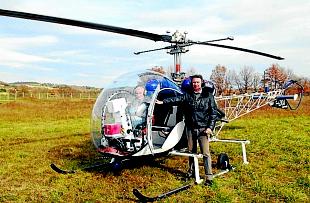 Parqué sur un terrain à côté dans l’enceinte d’Alespo, un Bell 47, sorte de libellule qui semble bien fragile avec sa coque en plexiglas et sa tringlerie apparente. Mais « cet hélicoptère est celui qui offre une meilleure vue et il peut embarquer deux personnes » en sus du pilote.