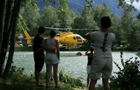 Le ravitaillement en carburant de l’hélicoptère eut lieu à la DZ des bois ; quant au remplissage des "Bambi Bucket" de 900 litres d’eau ; cela s’est passé au lac de Champraz à quarante mètres en face de la maison de Pascal Brun ; cela fut l’animation de l’après-midi...
