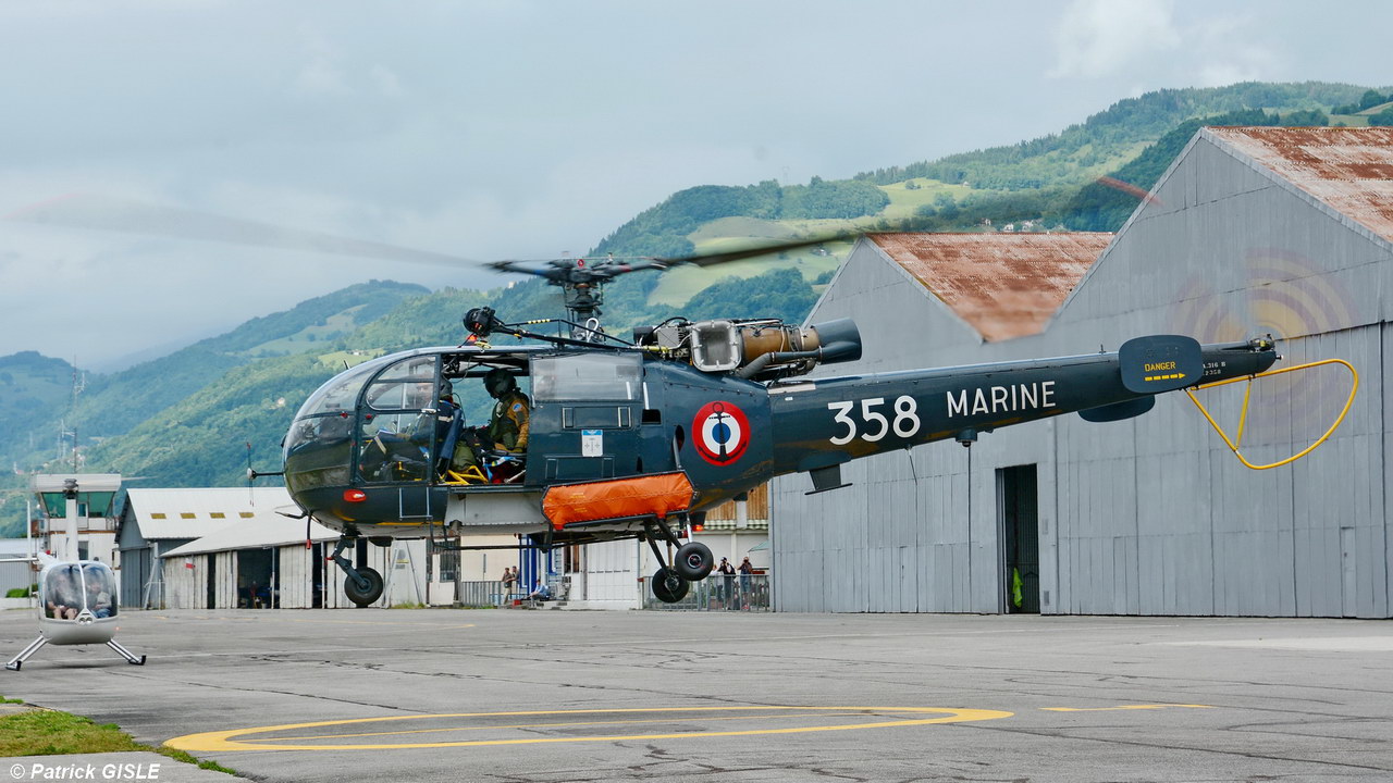 C’est l’Alouette III de la Marine nationale (Escadrille 23S) venue d’Hyères qui a inauguré le bal avec son sifflement diaboliquement excellent, suivie de l’Alouette II et