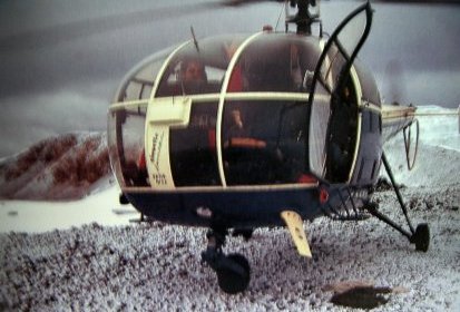 • Alouette 3 SE 316C posée au sommet du Popocatépetl à 5400 m (Mexique), Pilote : Claude Aubé.