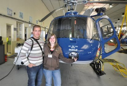 Arrivée enfin devant la porte du hangar, l’impatience me gagne, les secondes se transforment en heure, nous nous rapprochons peu à peu de cette porte qui s’ouvre et que je finis par franchir... devant nous : JCK, JCH,JCC, JBE, JCS mais je n’ai d’yeux que pour un petit hélico qui se trouve au fin fond du hangar, tout remonté, tout brillant... je le reconnais de suite...