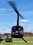 Le second R66, plus récent avec 40 heures au compteur, est venu de Cholet. Son propriétaire, Philippe ANTOINE a gentiment répondu présent tout en offrant à l’Héliclub de l’Ain près de cinq heures d’essais ou baptêmes à différents pilotes ou passionnés durant l’après-midi. Il a même poliment demandé à régler le kérosène qui lui a été fourni… demande rejetée évidemment ! Son appareil lui a été vendu par le distributeur belge de la marque Robinson : la société Air Technologie Belgium, représentée par M. Marc DESPRETS qui était présent également. J’ai eu le privilège d’essayer cette machine, en tant que passager et ai pu en apprécier la stabilité, le confort et les performances, aussi bien en taux de montée que, et surtout, en "plané" avec ses pales à la corde supérieure de 20% à celle d’un R44.